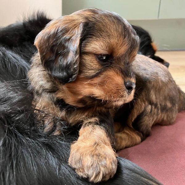 A first generation cross-breed, 50/50 cavalier and toy poodle